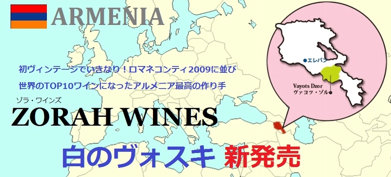 アルメニアの地ブドウ、ヴォスキアとガラドゥマックを使用した白ワイン。花やスパイスの香とボリューム感。引き締まった酸とのバランスも見事な興味深い白ワインです。